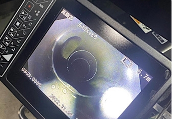 清掃作業終了後、目視できるところは目で、目視できないところは内視鏡カメラ(※)を使って排水管の汚れの落ち具合をチェックさせていただきます。